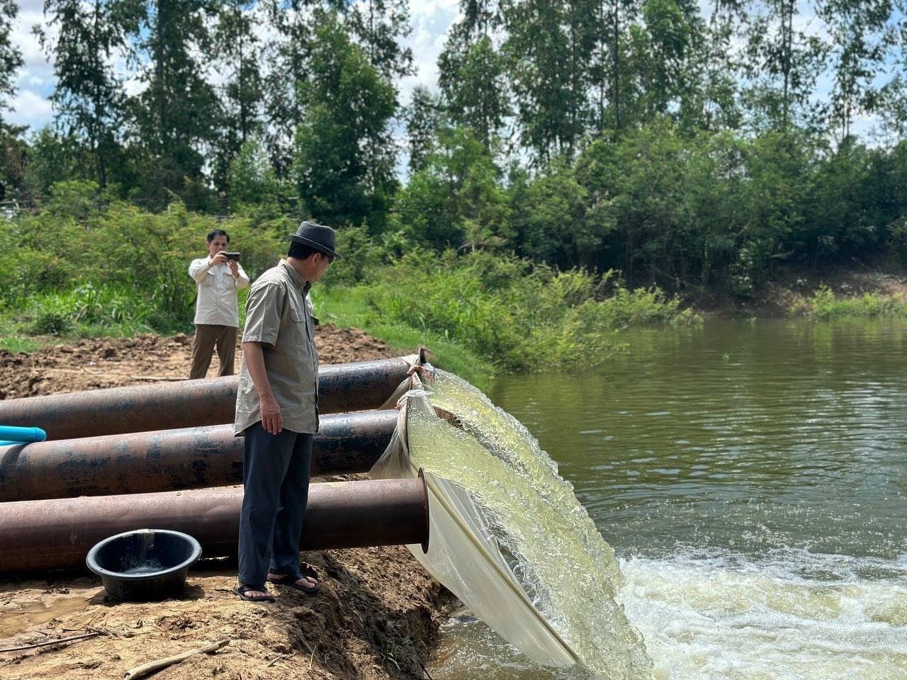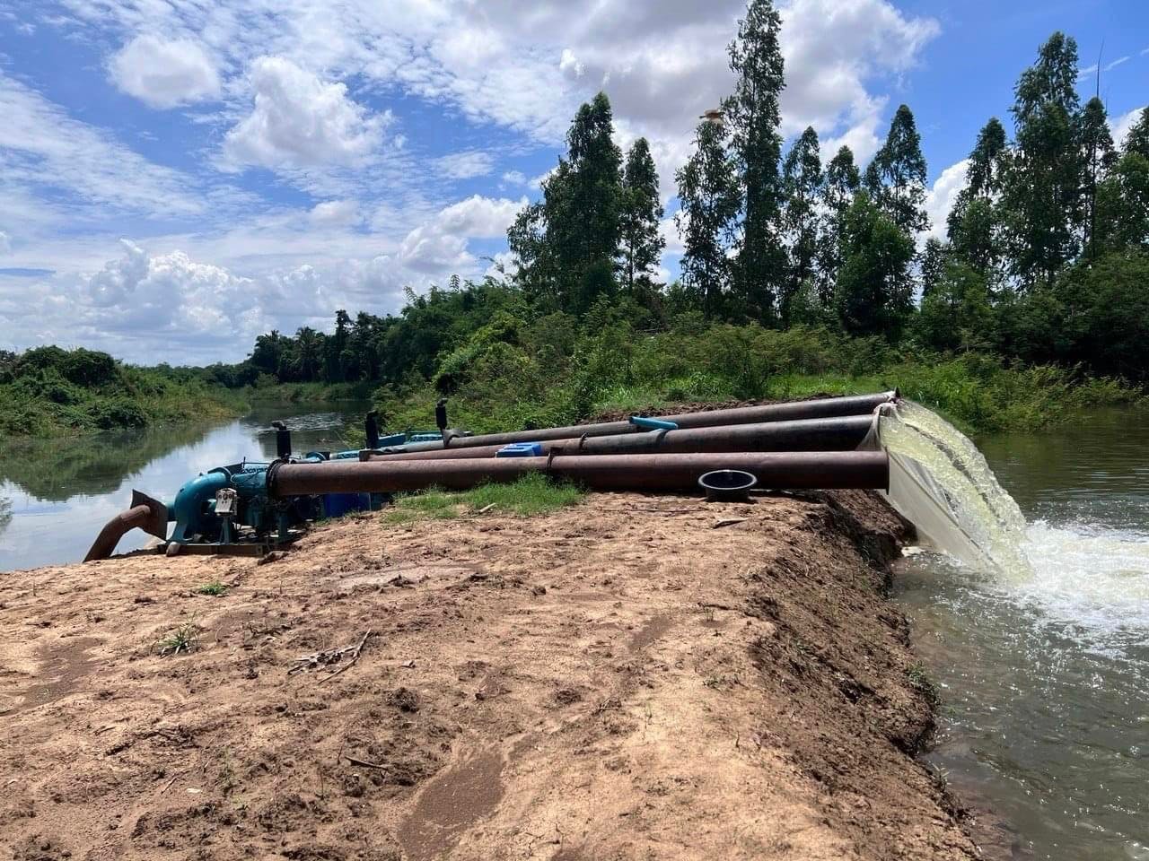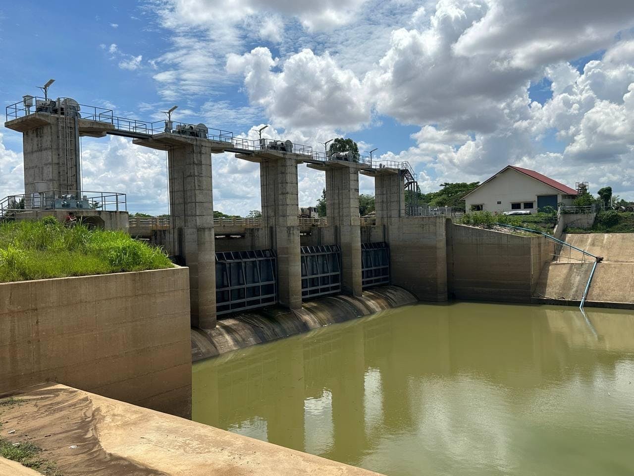 នៅក្នុងកំឡុងពេលចាប់ផ្ដើមសាងសង់បាតគ្រឹះសំណង់ លំហូរទឹកស្ទឹងមង្គលបុរីត្រូវបានកាត់ផ្ដាច់ ប៉ុន្តែដើម្បីជៀសវាងដើម្បីចៀសវាងនូវការខ្វះខាតទឹកសម្រាប់ប្រើប្រាស់ក្នុងជីវភាពប្រចាំថ្ងៃរបស់បងប្អូនប្រជាពលរដ្ឋនៅផ្នែកខាងក្រោមសំណង់ ឯកឧត្តមរដ្ឋមន្ត្រី បានបញ្ជាឲ្យក្រុមការងារដំឡើងម៉ាស៊ីនបូមទឹកខ្នាត ០៣ តឹក ចំនួន ០៣ គ្រឿង ដើម្បីបូមទឹកបញ្ជូនទៅផ្នែកខាងក្រោម ។ ការងារសាងសង់បើកគ្រឹះសំណង់នេះ ត្រូវការពេលវេលាប្រមាណ ១០ ថ្ងៃទៀត ទើបរួចរាល់ ហើយអាចបើកឲ្យចរន្តទឹកស្ទឹងមង្គលបុរី ហូរជាប្រក្រតីឡើងវិញ ៕